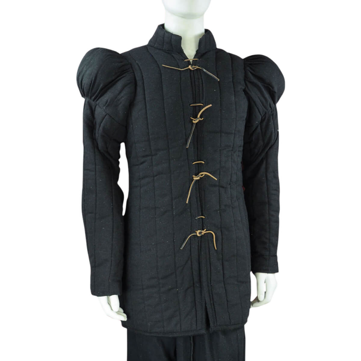 A thick, padded jacket common to Medieval and Renaissance warriors, the Gambeson was a protective layer beneath chain or plate armor – it served both as a shock absorbing layer and chafe protection for its wearer. Poorer combatants and lightly-armored archers and skirmishers might wear only the gambeson as their major piece of body armor.