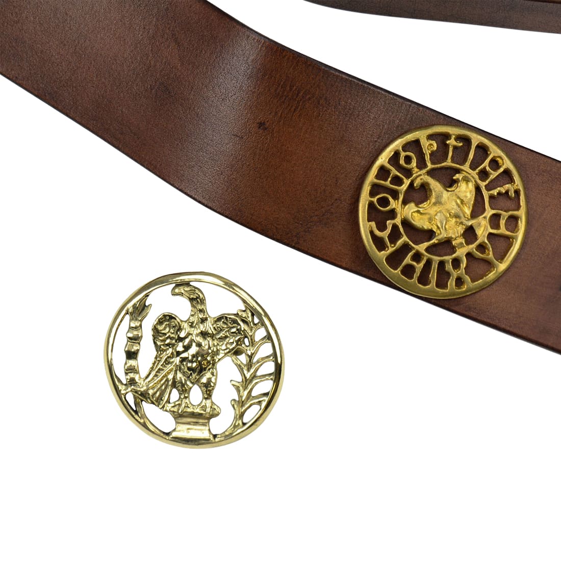 This 3rd Century Roman Baldric is constructed from quality thick leather and brass fittings. It has an included alternative medallion that can be used instead of the default one.