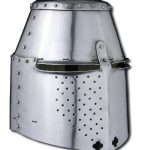 If you are looking for a powerful piece to use during SCA combat and reenactment, the Great Helm is it! It?s practical, serious and pretty mysterious! Throughout the 13th century, this head protection saw many changes. The reconstruction that we have used replicates the Pembroke helmet that was designed around 1300 AD, which is now secured in the Burrell Collection Glasgow.