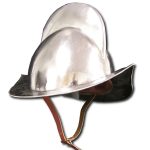 If you are an armor enthusiast, you are likely familiar with the Kettle Hat that this Morion Boat Helmet took the place of at the turning of the 16th century and well into the 17th century. It traditionally featured an unusual crest or ?comb? that was used to strengthen construction and deflect blows however; it became more exaggerated on later models as a decorative piece. Although the Morion is most commonly associated with Spanish conquistadors, foot soldiers throughout Europe wore it as well. This Morion Boat Helmet has been crafted from 16-gauge steel, lined with leather and given a chin strap so it is durable and comfortable.