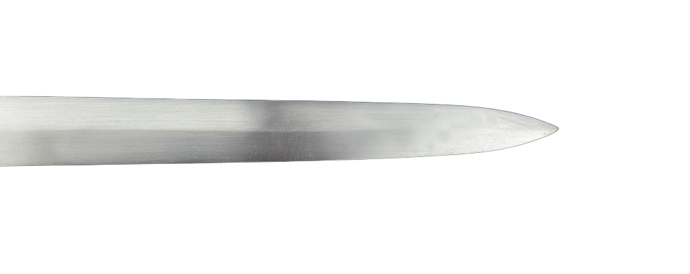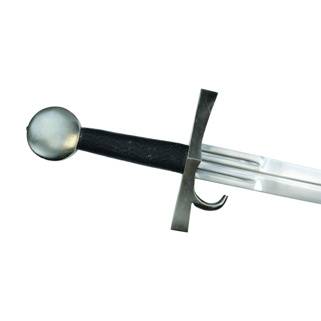Based off an original Italian sword once housed within the Arsenal of Alexandria, this 15th century sword is reproduced by the premium Primus line of Deepeeka. The blade is crafted from high carbon steel; the hilt is blued steel and the wooden grip is bound in twisted wire of blackened steel.