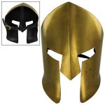With a reputation for being fierce and feared warriors, the Spartans of ancient Greece were a force to be reckoned with. They were intimidating in appearance with armor such as the Ancient Greek Brass Spartan Battle Mask. Drawing upon historically authentic design, this piece is sure to enhance your Spartan ensemble. With 20 gauge brass plating, this mask pnicely protects the cheeks and nose while providing visibility and breathing room with the eye and mouth cutouts. It ensures a comfortable and secure fit with leather lining and leather straps with a brass buckle. Great for costumes and role-playing and guaranteed to attract attention.