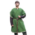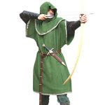 To blend in with the forest, the Huntingdon Green Over is the way to go! Made of 100% cotton, this subtle green tunic comes with a hood and is accented by brown medieval trim. It also has loose, open sleeves that provide ease of movement. Whether for playing an outlaw or being an archer, this multi-purpose garment is a worthy addition to any wardrobe.