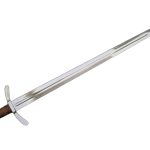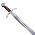 This simple, one-handed sword with its tapered blade is most akin to the ??Arming?? swords of medieval Europe. Utilitarian weapons, these swords were often carried by archers and crossbowmen in the later Medieval period so that they could defend themselves when attacked or when ordered to wade into the melee. It was also a common second weapon for halberdiers and pikemen to fall back on should their tight formations be disrupted or their foe had closed the distance too closely.