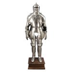 This full suit of armor is inspired by one worn by Charles the Bold, the last Duke of Burgundy. It is an example of the encompassing and highly protective full plate armors available to well-heeled warriors in the late 15th century.
