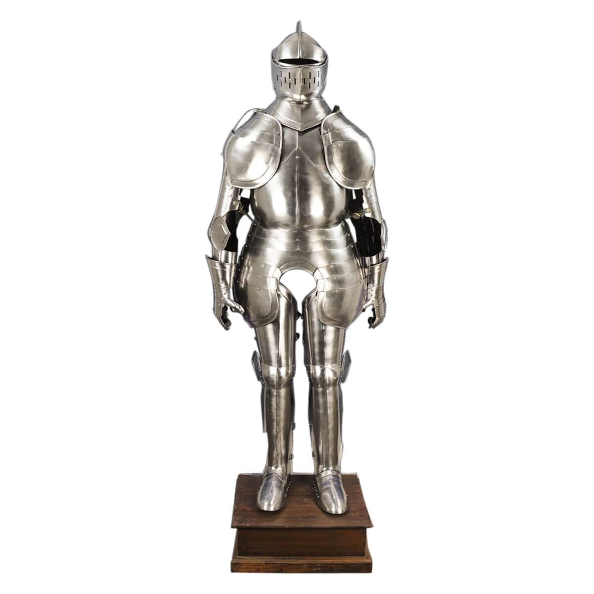 The armor comes with a wooden display stand that ensures that the suit of armor towers over most people, heightening its appeal as a display armor. A black metal insertable frame holds the armor upright as a display armor. It is well suited as a display armor to someone who wants a more authentic and practical armor than what is often on the market.