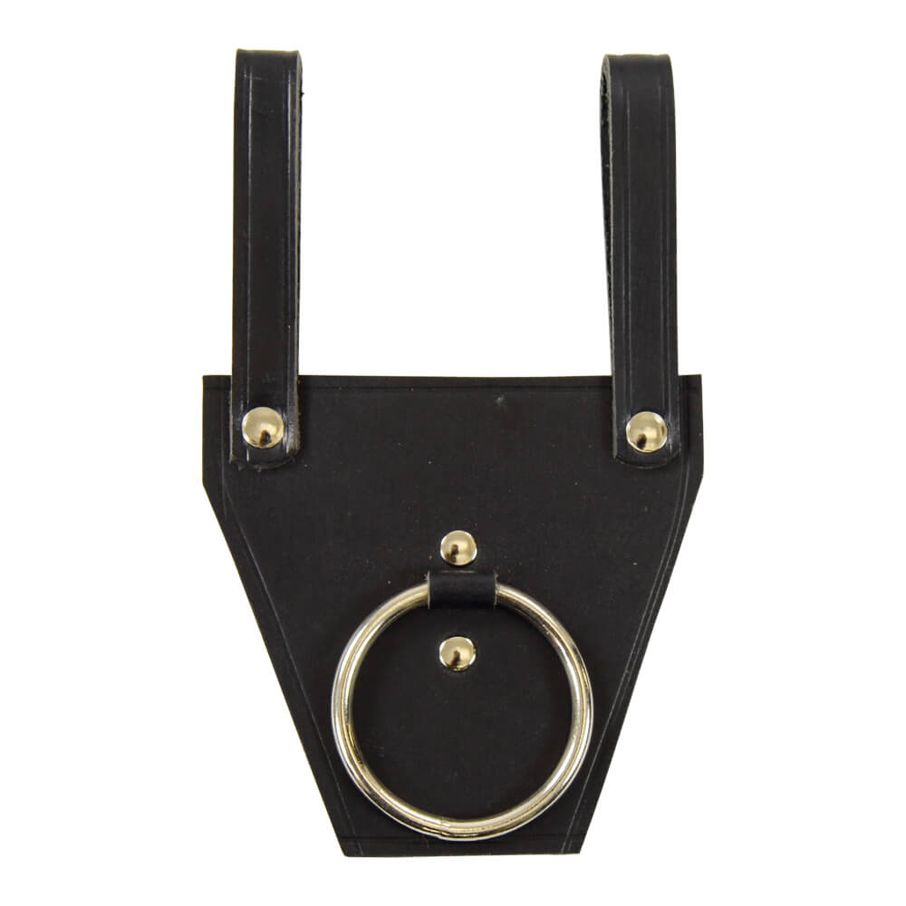 The Axe or Mace Frog is the perfect accessory to ensure convenient carrying of your weapon as you charge into battle. Frogs were one of the earliest ways of carrying a sword, axe, and mace and proved to be quite effective. With authentic design, this piece is constructed from riveted top quality leather and features a steel hanging ring for fitting. Great for costumes and re-enactments. 7 3/4″ x 4 7/8″