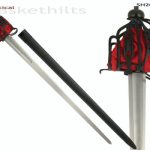 If you are looking for a safe and impressive weapon for your next reenactment, lok no further than the Basket Hilt Broadsword. Boasting of a scarlet red basket with intricate detail, this sword features a hardened, high carbon steel blade with a rounded, unsharpened tip. Also included is a scabbard with a matte black finish. Providing balance and protection, this is a wonderul addition to any collection.