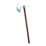 This Battle Axe has a head of high carbon steel and is fitted and riveted to a wooden haft.