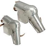 The Medieval Battle Ready 15th Century Italian Arms Armor Set boasts historically authentic design modeled after armor made in Italy during the Middle Ages. Offering superior protection for the upper arm, elbow, and lower arm, this set features 16 gauge craftsmanship. The elbow piece possesses a leaf shape and adds extra reinforcement. The lower arm piece has an extra protective piece that wraps around. The inner part of thie arm piece is given a black finish. All these arm pieces ensure a comfortable fit with adjustable leather straps and buckles. Fully functional with medieval flair, this arm armor is attractive in appearance and great for costumes and re-enactments.