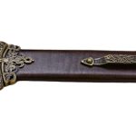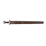 Included is a wood-core scabbard which is finished with a steel chape and an integrated wooden suspension loop for wear.