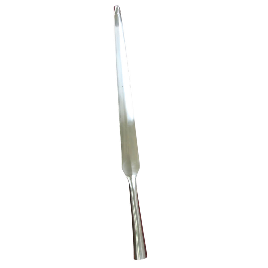 This blunted spearhead with a rebated tip is forged from high carbon steel. It is intended for stage and sport combat, reenactment and safe martial arts practice.