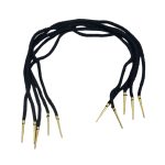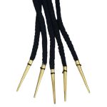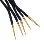 These cords, fitted with sewn brass aiglets, serve as the fastening ties for arming doublets, gambesons, and various other pieces of Medieval and Renaissance attire. The brass tips, or aiglets, prevent the cord ends from fraying and make threading through eyelets or lacing holes far easier, a practical detail valued by armorers and tailors alike. Such cords were essential for securing layered garments worn beneath armor, ensuring both comfort and mobility on the battlefield or during tournaments.
