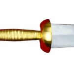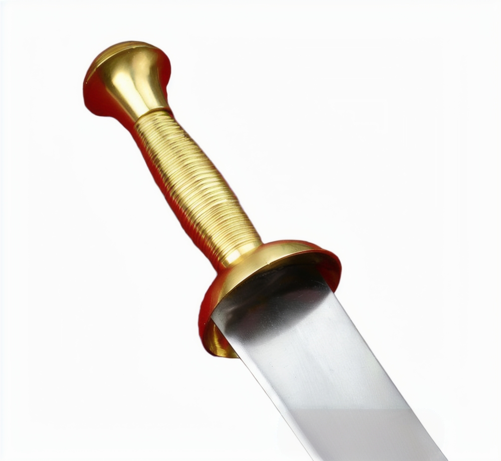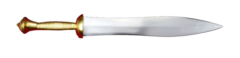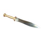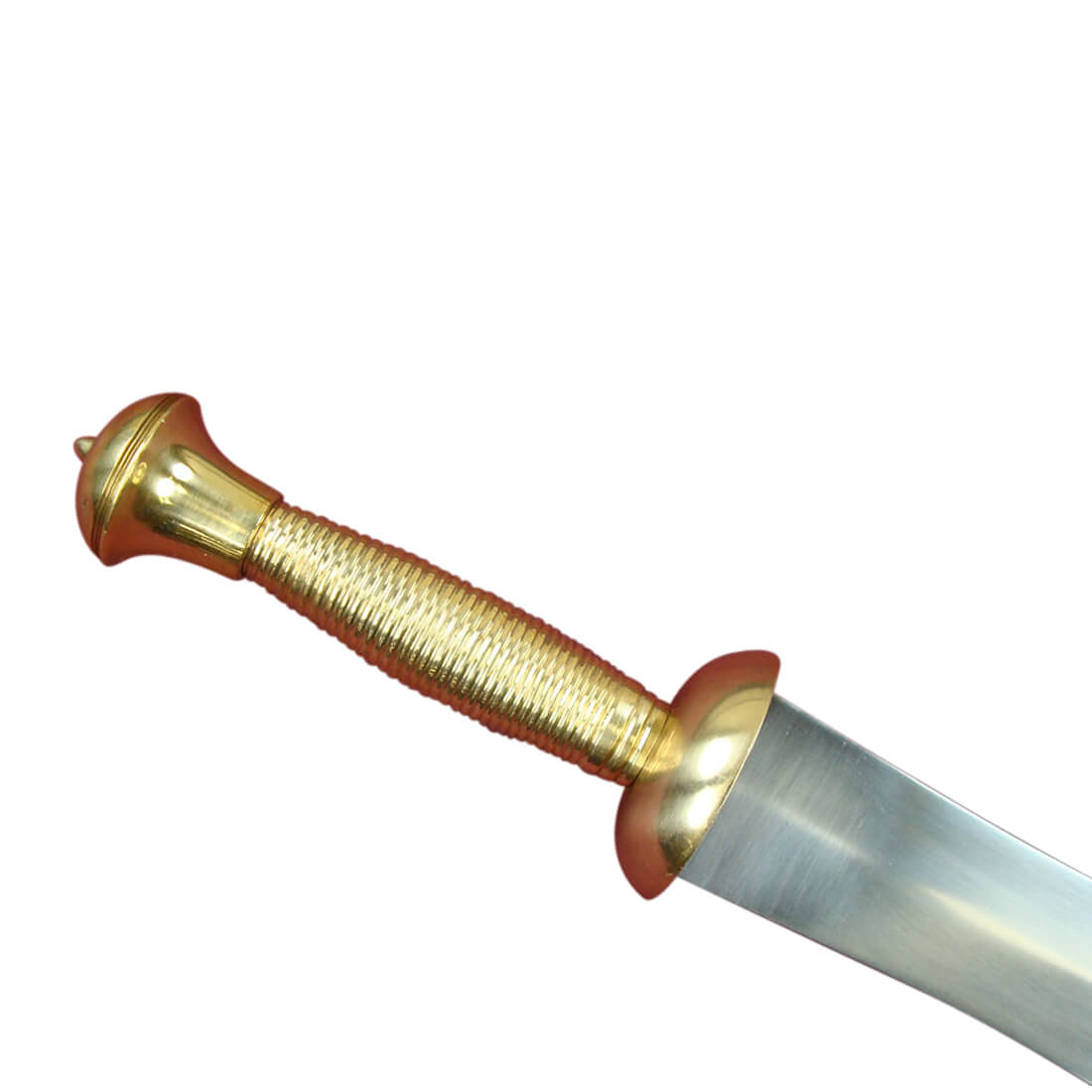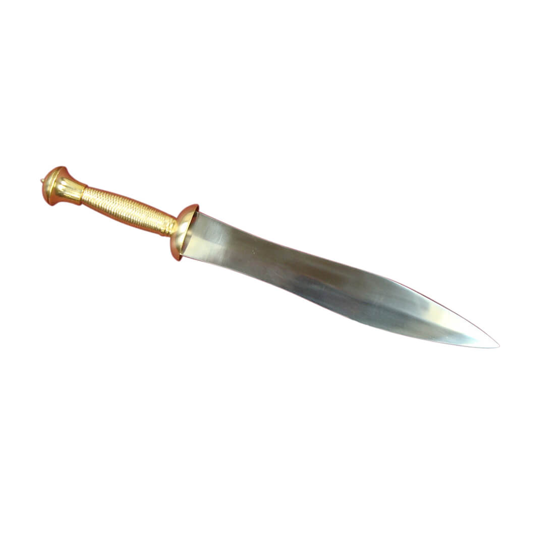 Perfectly suited to the brutal close combat of the Gladiator arenas, short stabbing swords like this one were used by many Roman Gladiators. Features an unsharpened carbon steel blade and solid brass hilt with cup shaped guard. No scabbard available as Gladiator weapons were simply carried into the arena.