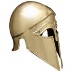 This Corinthian style spartan helmet is made of 18 gauge steel and plated in brass and polished to a high shine. This helmet is hand-made and of high quality. Made by Deepeeka, the design is historically accurate and great for wearing, (fits up to a 7 3/4 hat size approximately), costumes, display, or collection.