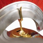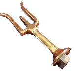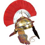 This plume holder is used to secure a crest to some types of Roman helmets. The brass holder slides into its slot and the crest is put atop the fork-like prong. The crest then has its ends tied to the helmet to securely affix it into place. This holder can be used for front to back or side to side crests depending on the orientation of the slot on the helmet. This narrow fitting is intended to be used for the thinner, metal based crests.