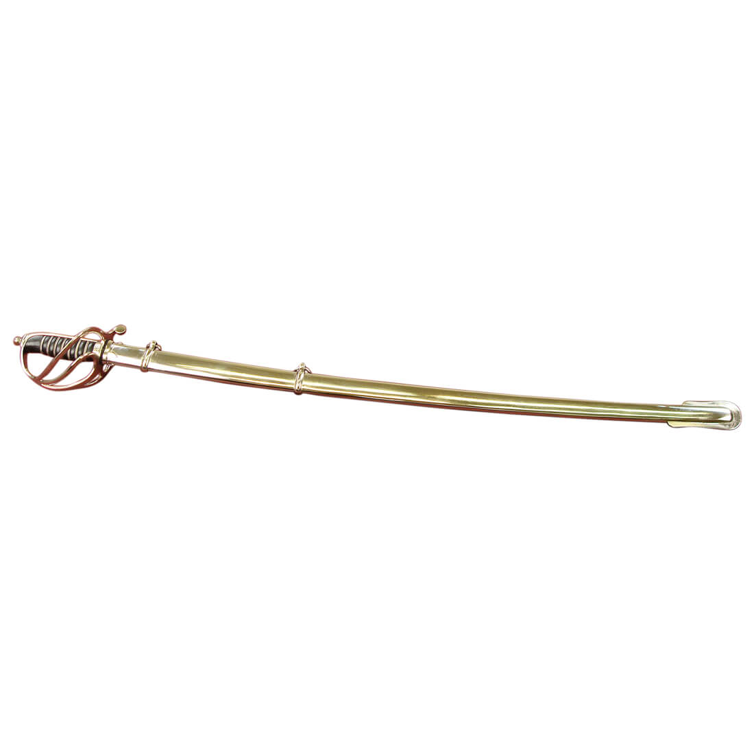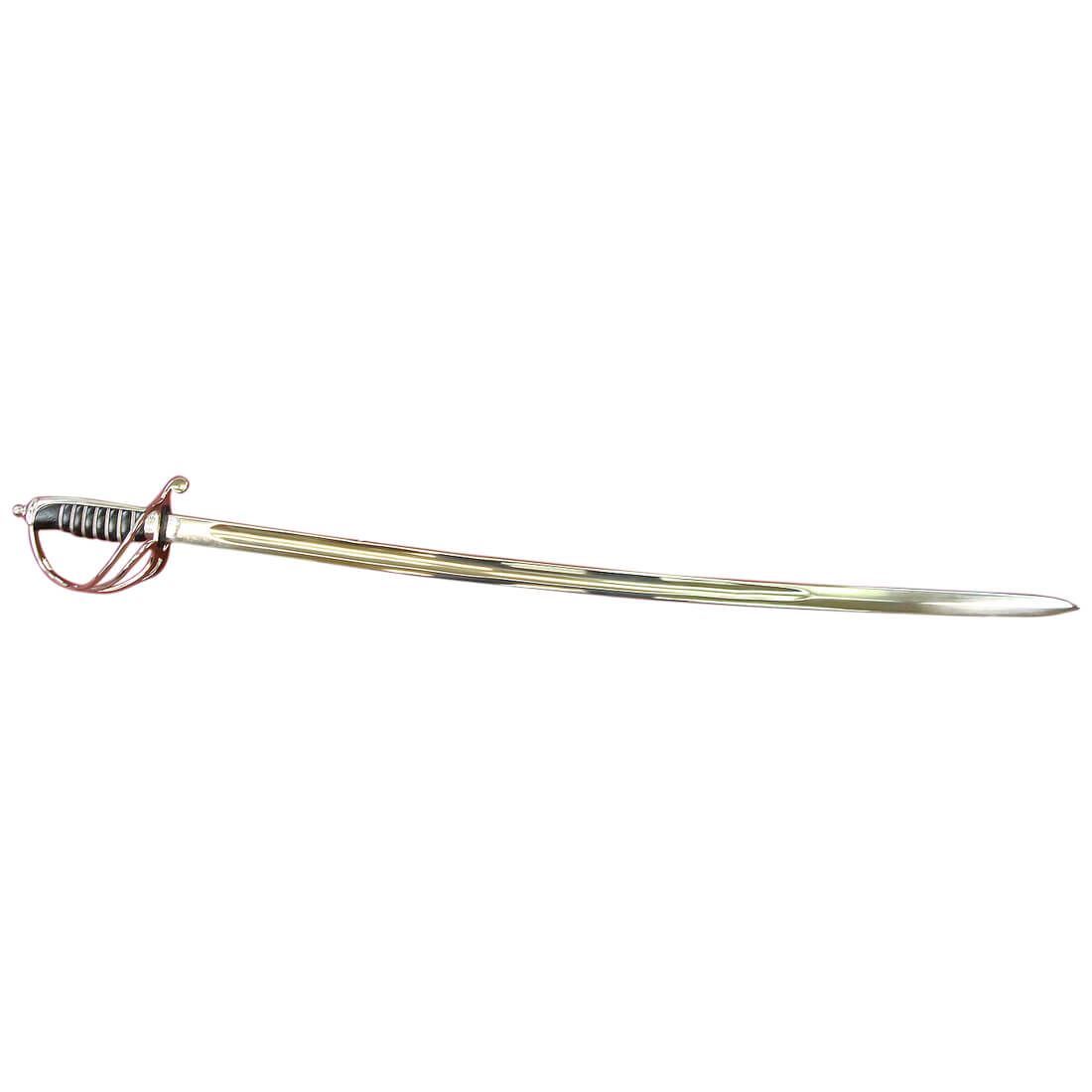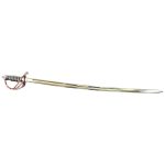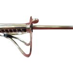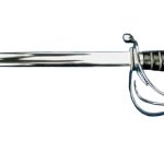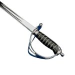 This replica of the British 1845 Wilkinson Light Cavalry Saber has a blade of high carbon steel. The guard is of guard, grip-plate and pommel are of steel and the grip is wrapped in tight, hardened black leather and inlaid with twisted steel wire. The scabbard with two integrated hanging rings is of steel.