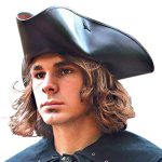When embarking on high seas adventures, the Captain Jack Tricorn Hat is sure to satisfy. Made of top grain leather, this piece features a weathered, dark brown finish and provides a comfortable and stylish fit. Drawing inspiration from Captain Jack himself, this hat is perfect for pirate ensembles, costumes, and reenactments.
