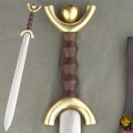 For all Celtic lovers and sword enthusiasts, the Celtic Sword is one that is sure to stand out. Featuring a 23″ leaf shaped blade, this piece has a macassar ebony grip, an anthromorphic brass hilt, and an intriguing pommel. Also included is a leather scabbard.