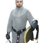 From the Celts of 300 BC to 18th century Asia, mail was one of the most prized items a warrior could own. This shirt features 16 gauge links combined in the “international” pattern, with 4 links through a 5th, which was common to all European mail. Faithfully copied from examples in museums and private collections, the diameter of each outer link is about 7/16?, and the inner link diameter is about 3/8?. Mail shirts fit up to a 54? chest, 33? long shirt, sleeves are approximately 18? and hang to just below the elbows on average height warriors. We recommend keeping this butted mail shirt oiled when not in use. Made by Windlass Steelcrafts?. This shirt features 16 gauge links