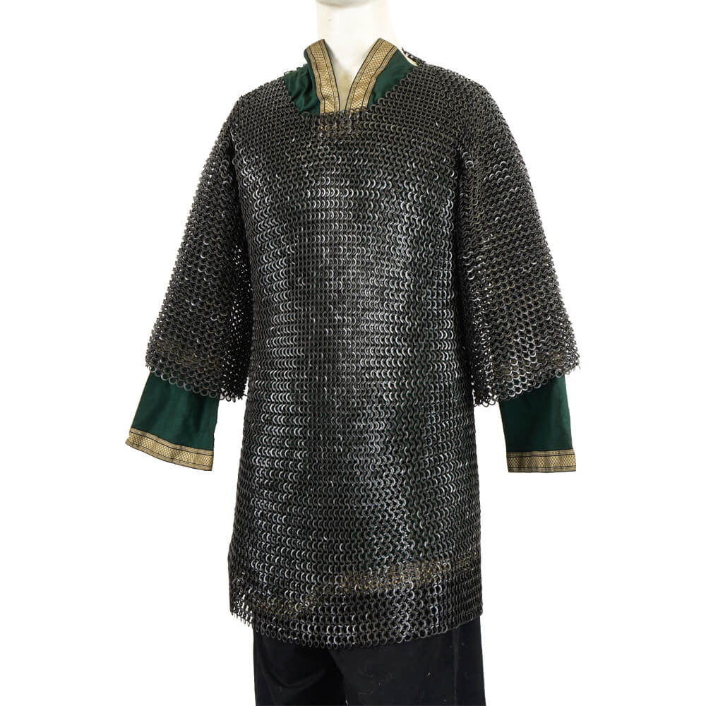 If you are an armor enthusiast or medieval re-enactor, you’ll love the Chainmail Haubergeon. Authentically designed after the traditional interlocking metal ring pattern popular in the Middle Ages, this piece features blackened mild steel craftsmanship with butted flat rings. Each ring has a 16 gauge thickness and measures 10 mm in diameter. With true period style, this haubergeon is ideal for costumes, re-enactments, and collections.