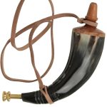 Material: Natural bull horn, brass external screw cap/funnel, wooden