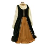 Though it is named as the Duchess Gown, this dress suits all classes, from duchesses to peasants. Made from 100% pure cotton velvet, you have the option to wear it with or without the Hoopskirt. The anterior opening of the gown shows the satin petticoat that comes with the dress. For more comfort, boning is provided on the anterior. It comes in neat colors and different satin fabric. Use dry cleaning only for care.