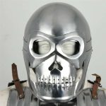 If you are looking for something that stands out from the typical knightly head gear, the Fantasy Knight Skull Helmet is sure to please. Deadly in appearance, this 18 gauge steel piece is set apart by its front guard which resembles a fearsome skull face. The face guard covers the entire face and rises on a pivot hinge. A rear piece is also included to guard the back of the head and the neck. Further enhancement comes from the adjustable leather interior liner which ensures a comfortable fit. With authentic design, this helmet is perfect for costumes and re-enactments and for striking fear in your adversaries.