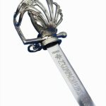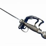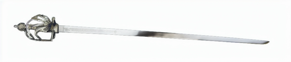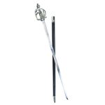 This French Musketeer Heavy Cavalry Sword has a blade crafted from 1055 high carbon steel. The hilt is steel and the wooden grip is overlaid in twisted steel wire. The scabbard is leather with steel fittings.