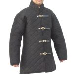 Maximize your comfort and protection with the Front Buckled Gambeson (Black). With an authentic look, this garment is crafted from durable, quilted cotton with organic cotton felt padding on the interior. Further enhancement comes from brass buckles and straps which secure the front and an arm pit design for ventilation and flexible movement. This gambeson is both pleasant to the touch and stylish and is great for costumes and re-enactments.