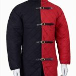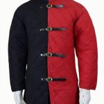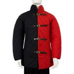 Maximize your comfort and protection with the Front Buckled Gambeson (Red and Black Natural Duo Tone). With an authentic look, this garment is crafted from durable, quilted cotton with organic cotton felt padding on the interior. Further enhancement comes from brass buckles and straps which secure the front and an arm pit design for ventilation and flexible movement. This gambeson is both pleasant to the touch and stylish and is great for costumes and re-enactments.