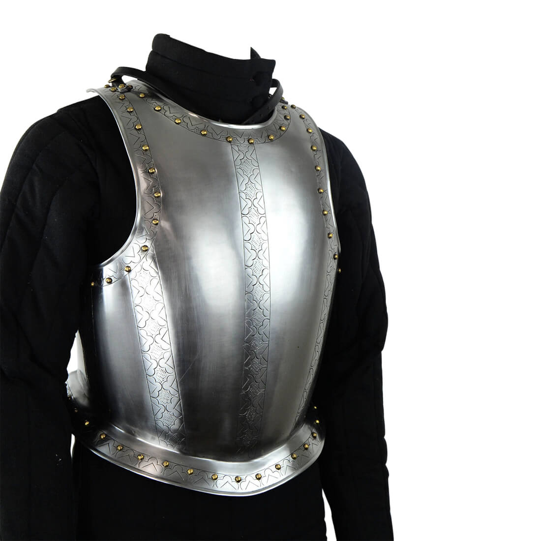 This impressive Medieval Breastplate is made from 18 gauge steel and is fully wearable. It features delicate laser etchings on the front and sides, and also decorative beads that line the edges. The piece is perfect for reenactments, costumes, or collection. Fits up to a 46″ chest.