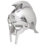 If you are looking for something a little more stulish than the typical arena head gear, the Rhino Armor Gladiator Steel Functional Helmet is sure to please. Conveying the excitement and competitive nature of the arena, this 20 gauge steel piece is set apart by a Rhino spike and fierce square contours. It features a steel plume that extends from the back to a point at the front and also includes a movable bascinet that protects the face. To ensure a comfortable fit, an adjustable leather interior liner and chin strap have been added. With authentic design and full functionality, this helmet is perfect for costumes, collections, and displays.