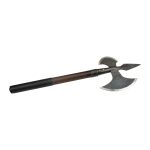 This Medieval Gothic Hand Axe has a robust hardwood haft which is dual pinned to a hand forged head of high carbon steel. The grip is completed with a stitched wrap of leather.