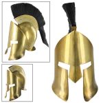 The Greek Spartan Crested Brass Helmet is inspired by one of the fiercest groups of warriors to ever enter the pages of history. They rose to power in ancient Greece and went from victory to victory. Featuring 20 gauge steel construction with brass plating, this authentic reproduction provides excellent protection for the head, face, and neck. It is highlighted by a classic Spartan mask riveted in place and has a black horse hair plume. To ensure a comfortable and secure fit, the head gear comes with a soft inner leather liner and an adjustable chin strap. With true Greek style, this helmet will give an intimidating appearance and is perfect for costumes, collections, and re-enactments.