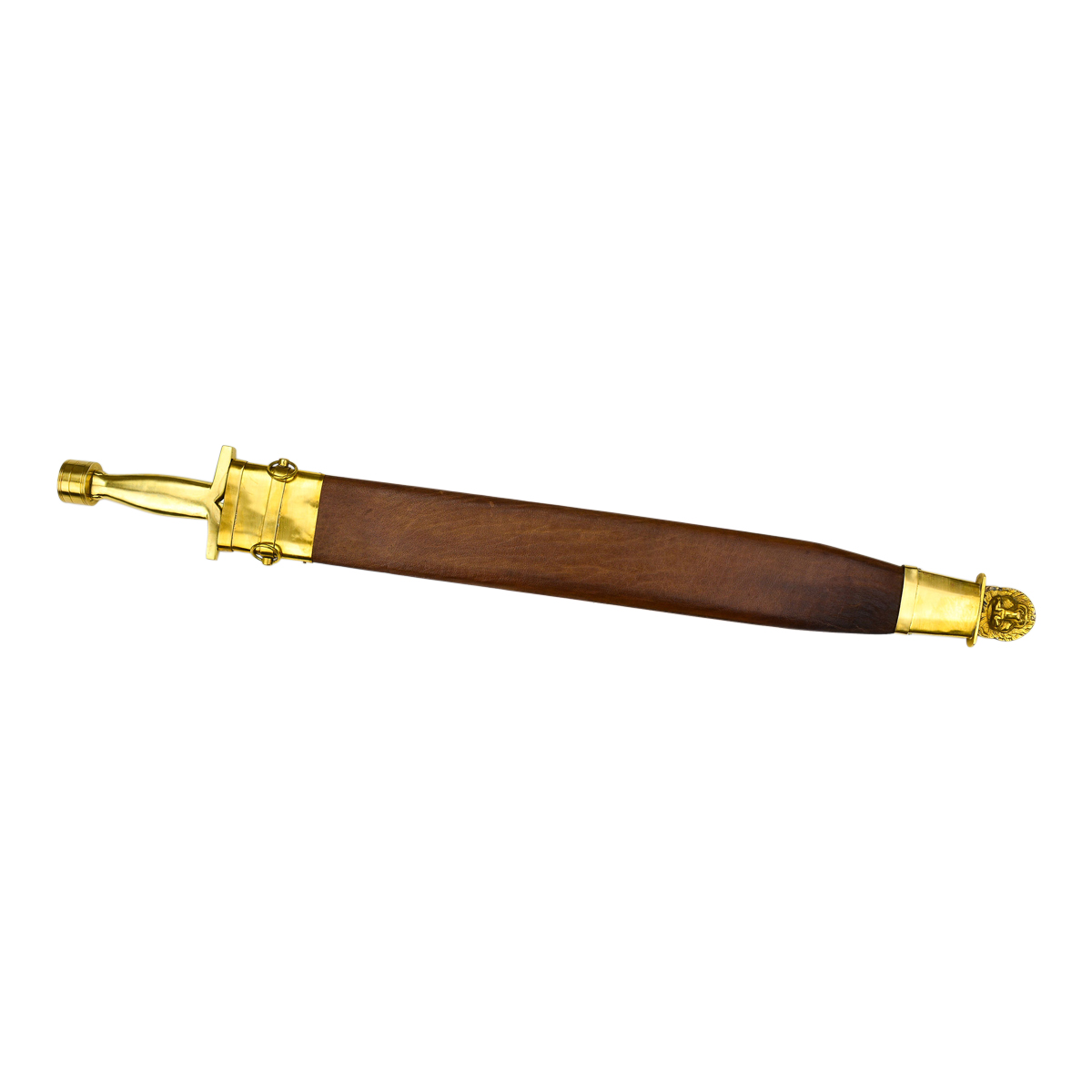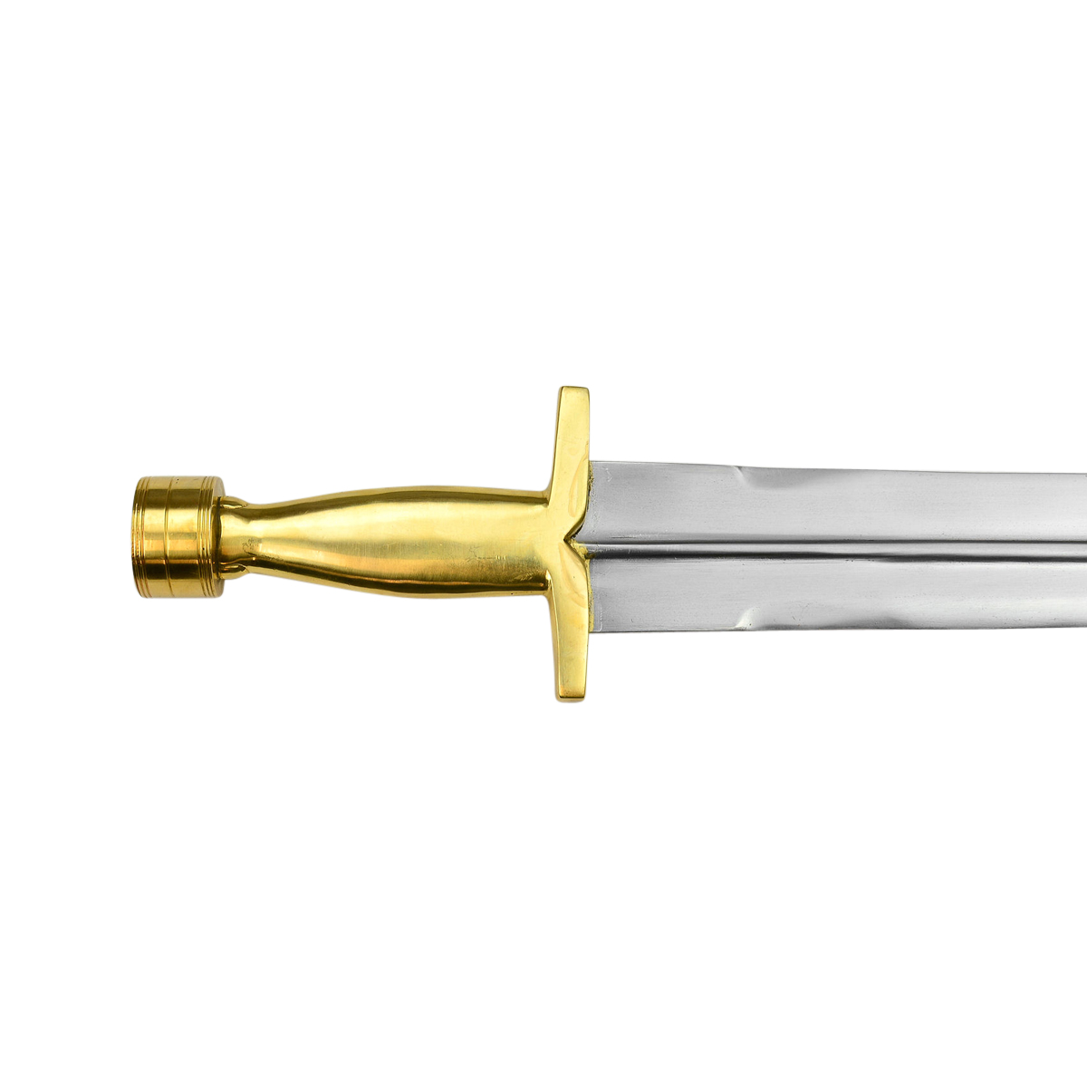 The Greek Sword is an authentically designed reproduction of the weapons used by Greek warriors. Featuring an EN45 steel blade with tapered edge, it has a solid brass hilt and a matching brown leather wrapped wood scabbard with a brass throat and lion head tip. Great for reenactments, costumes, and collections.