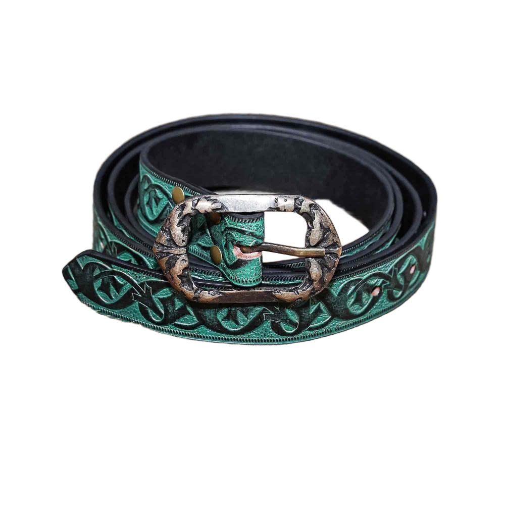 Step into the role of a seasoned ranger at your next medieval fair, LARP, or cosplay gathering with this leather belt, embossed with intricate motifs that echo the designs favored by woodland scouts and wanderers of old. Each belt is shaped and embossed by hand, drawing on age-old techniques that bring out the character of the leather and the depth of the patterns.