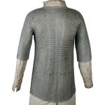 If you are a true enthusiast of the Middle Ages, you owe it to yourself to add the Haubergeon Replica Chain Mail Armor Long Shirt to your collection. Chainmail was one of the most popular armor types during medieval times, as it offered superior protection. It is characterized by metal rings linked together in a pattered formation. This piece is made from 16 gauge mild steel and features a round ring butted construction. It has long sleeves and fits mid-thigh length. With authentic design, this habergeon is great for costumes and re-enactments.