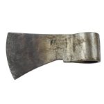 This Heavy Throwing Tomahawk has a haft of hard hickory and a head of head carbon steel. The handle has a teardrop cross section designed to aid in edge alignment. This example was cleaned up with a few minutes of work with a scuff pad. These items typically have axeheads with a notable amount of dried oil, light surface pitting and light rust. The tomahawks are shipped assembled, not separated as was done for the last photo.