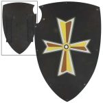 The Heroic Cross Medieval Knights Foam Shield dates back to the Middle Ages when crosses were quite popular and seen on uniforms, weapons, and public buildings. The cross was a symbol of honor and loyalty to one’s country. Since that time, crosses have not disappeared, but still remain a widespread emblem. Drawing upon historical inspiration, this shield features a handsome medieval cross as it’s centerpiece and is surrounded by ornate simulated grommets on the edges. With high quality polyurethane craftsmanship, this piece is light weight, functional, and easy to carry with the inclusion of 11 in. nylon straps and velcro fasteners. It’s great for all ages and perfect for costumes and LARPing.
