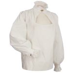 For a beautiful look that’s sure to leave an impression, try this High Collared Elizabethan Blouse. Made from soft, 100% white cotton, this piece features an open triangular front design and lace trimmed collar and cuffs with two brass buttons for closure. With elegant style, this blouse is great for many costume events.
