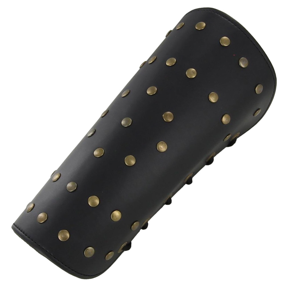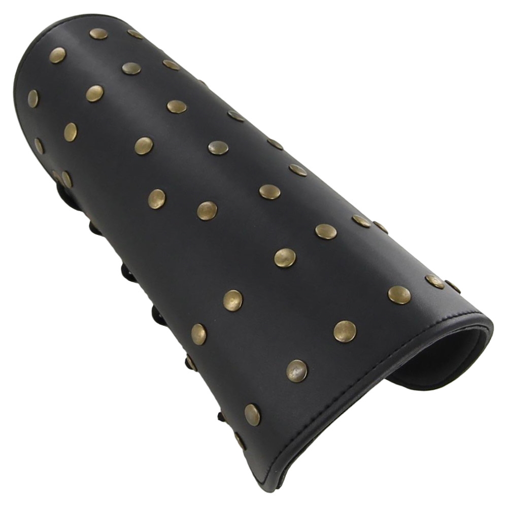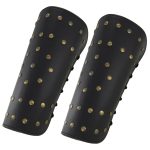 These decorative pieces are great for completing a fantasy costume or adding a little something different to traditional armor or clothing. Made From thick black leather with beautiful tan leather designs these bracers will surely get you noticed. Brass rivets line the sides with a nylon lace so you can adjust to the perfect size for you. Made to protect ones forearm from blows, the Kings Ransom Handmade Leather Bracer Set is a must have.