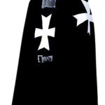 All cotton made clothing, composed of black colored cloak with a sewn white Hospitaller cross. Typical dress of a knight of the order of the Hospitallers. One size.
