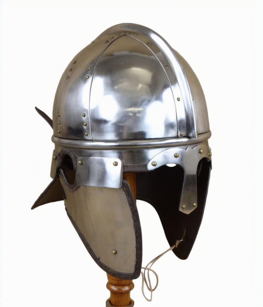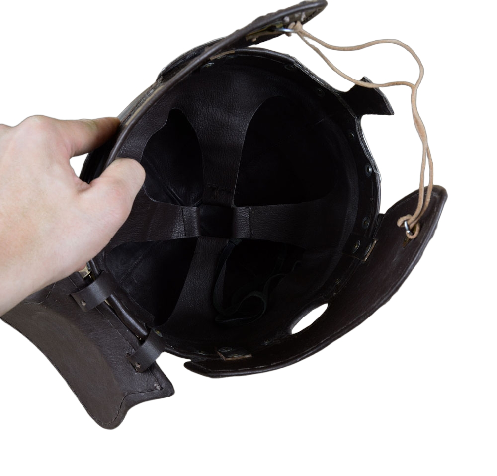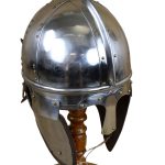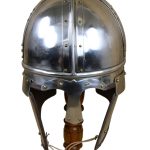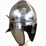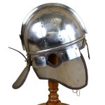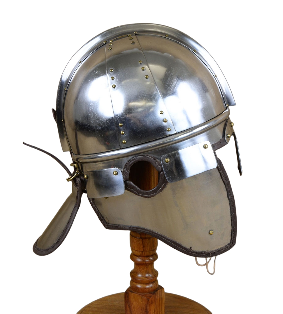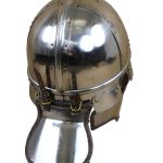 The Infantory Helmet (Intercisa II) made by Deepeeka is an accurate replica ornate based off historical research and authentic in its design. This incredible helmet dates back to the 3rd century. Our version is made from high-carbon steel and comes with leather interior. It also features a nose guard, ear holes, and rivets for extra support. This is a great addition to your collection, a companion to your high-end costume, and as a gift!