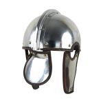 The Intercisa I Helmet made by Deepeeka is an accurate replica ornate based off historical research and authentic in its design. The Late Roman Intercisa I Ridge Helmet is the typical light infantry helm, probably worn by auxiliaries instead of the legions. The original was found in a cache at the Roman fort of Intercisa in Hungary. Helms of this style seem to have been based on the similar two halves ”ridge” helmets of Rome’s enemy, the Sassanian Perisan empire. The eyes placed on the front of the helmet are reminiscent of the eyebrows on the fronts of the Imperial Gallic Helmets, and appear to be a Roman feature, not seen on Persian helmets. Made of steel and fully leather lined. This is a great addition to your collection, a companion to your high-end costume, or as a gift! Made by Deepeeka