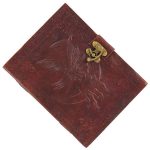 Fairies are magical beings and the stuff myths, legends, and folklore are made of. They are playful at times, cunning at times, and often come to the aid of one in need. As these things are also components of life, it only seems appropriate that Kimberly the Mom Fairy’s Handmade Leather Journal would be a fitting place to record these events, as well as many others. This is no ordinary notebook, but one that captures the fairy world with elegant craftsmanship. The 220 soft, white pages are sandwiched between genuine leather with brown string to hold it together. For further enhancement, the page edges are ornamented with a scroll-like accent. An embossed fairy on a crescent moon highlights the front cover along with a floral design border. Turn the book over and you’ll find matching floral designs. And to ensure your personal thoughts are kept intimate and secure, the inclusion of an antique closure is a valuable asset. Whether giving this journal as a gift to a special someone or using it yourself, it’s a piece destined to be cherished.