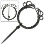 The Medieval Knotted Ring Brooch is the perfect way to give your ensemble that little extra touch of style. Drawing inspiration from the Roman clasp, this type of adornment was widespread throughout Northern Europe during the Middle Ages. It was quite effective in fastening heavy tunics to guard against harsh weather. With beautiful design, this solid brass accessory is highlighted by a twisted knot pattern on a matte black finish along with twisted ends. The 4 in. pin rests on the loop, held in place by the fabric which it goes through. Fitting for many garments, this brooch is sure to attract attention and is perfect for costumes, Renaissance fairs, and re-enactments.