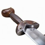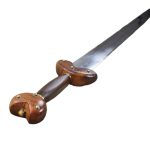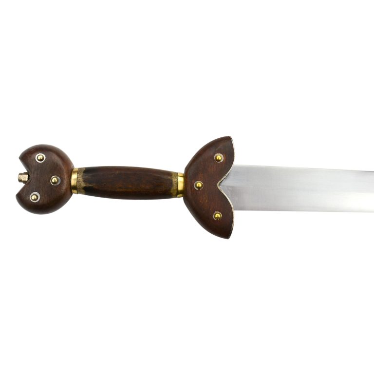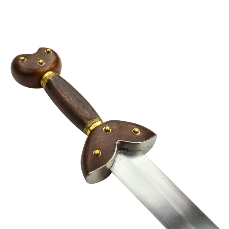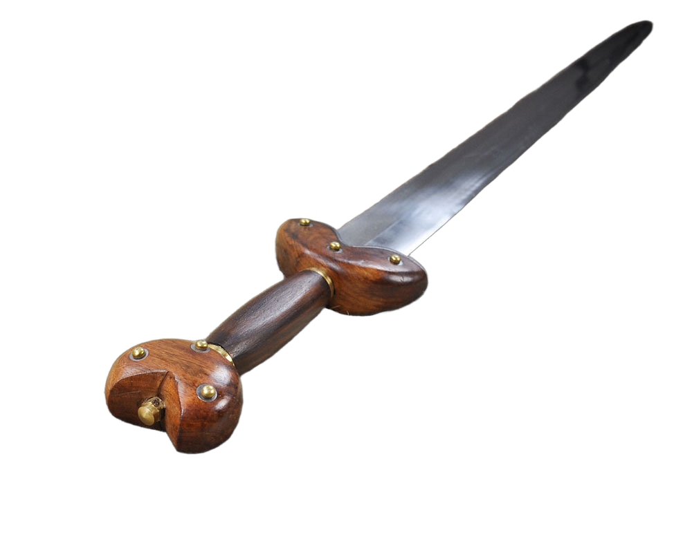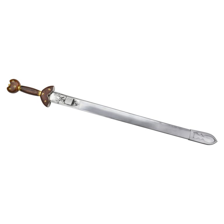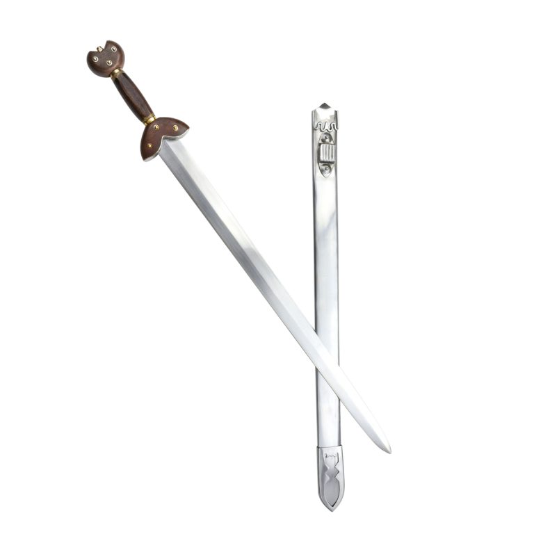 The “La Tene” Celtic Short Sword is a special piece derived from an authentic Celtic design. Featuring a metal blade with a slight slant, it has a flared guard and pommel, accompanied by a metal scabbard. Great for collections, costumes, and reenactments.