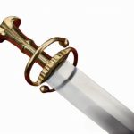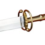 This handcrafted dagger is a recreation of a well preserved 16th century German original with a hilt in the form of the iconic Katzbalger sword and likely it was once a trusted companion of one of the famed German or Swiss Landsknecht mercenaries. The dagger makes an excellent companion piece to a full size Katzbalger sword to complete a Landsknecht ensemble, though it is a fetchingly elegant and deadly dagger in its own right. The blade is hand forged from resilient C60 high carbon steel which is stoutly mounted into a fine cast hilt of solid polished brass. The blade is anchored into the hilt by peening it over the pommel for a tough overall construction.