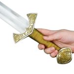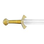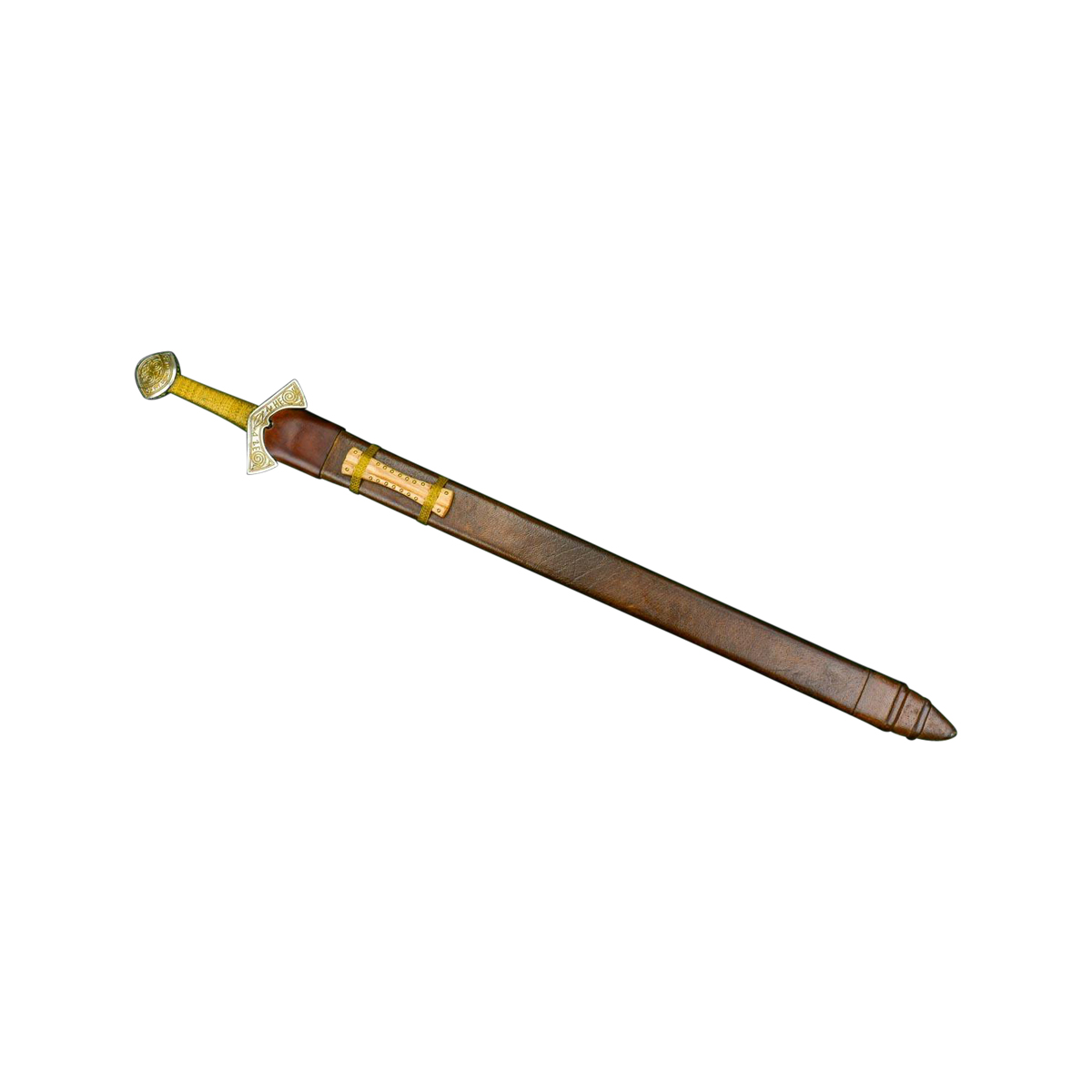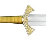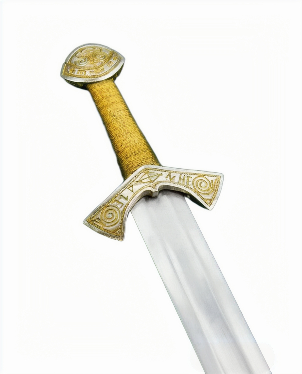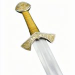 This replica of the famed Langeid Sword has a blade of tempered high carbon steel. The hilt is brass which is plated in nickel and the wooden grip is wrapped in tight brass wire.